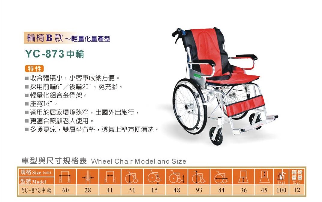 輕量化輪椅|YC-615 中輪