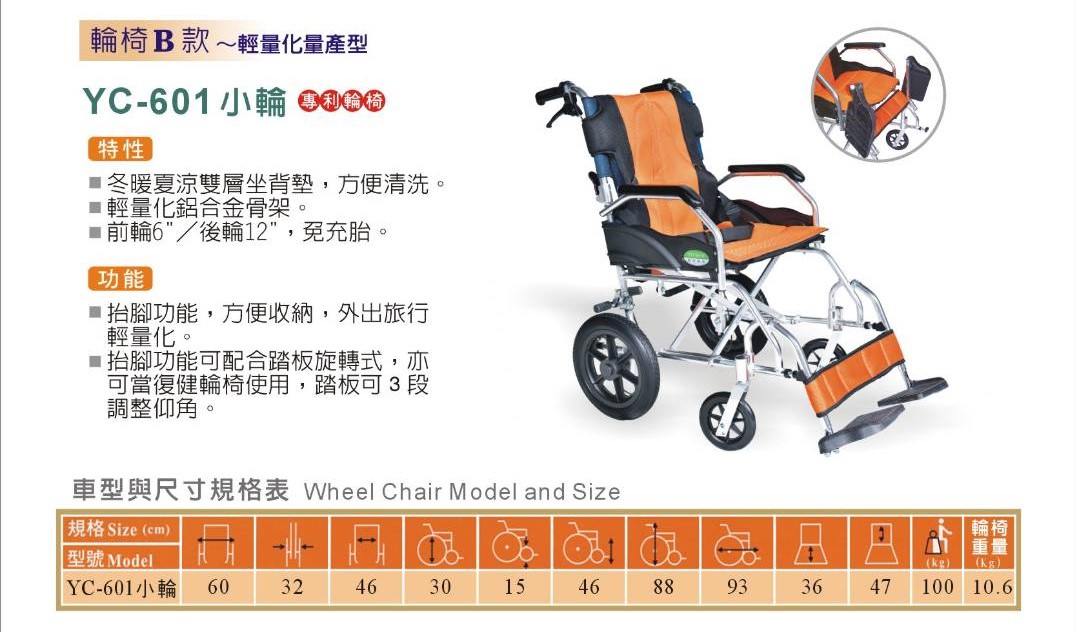 輕量化輪椅|YC-601 小輪